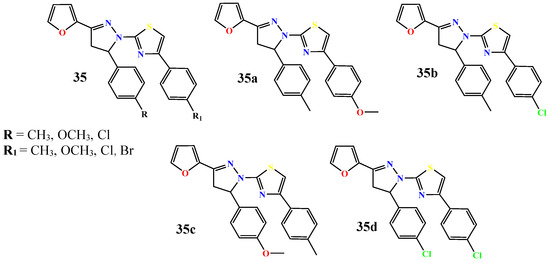 | 35a | α-Glucosidase α-Amylase | 0.158 32.46 | Acarbose 0.161 31.46 | [64] |