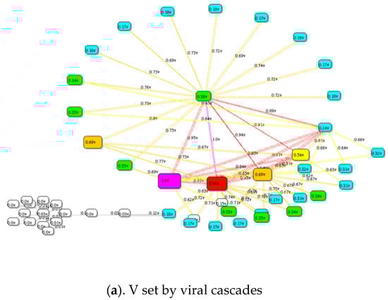 Recall that viral cascading is an avalanche of faults emanating from a seed node/link and spreading until no additional nodes/links fail. Property cF(i) is the number of times node/link (i) fails when the simulated viral cascade is repeated t times: