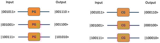 We cannot directly employ the injection operator within the quantum computer since it is not a unitary operator. M is not unitary due to with is not satisfied in the Hilbert space. Given this, instead of using the injection operator, it is imperative to employ dynamic conditional gates, such as the CX gate (also known as the CNOT gate), within the quantum circuit. The CX gate is a 2-qubit gate. If the first qubit (control qubit) is , then it will flip second qubit (the targets qubit) state from to or vice versa.