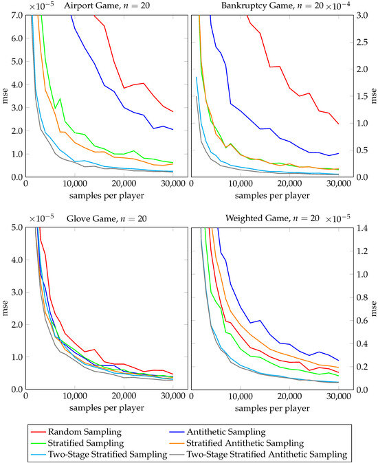 - Castro, J.; Gómez, D.; Molina, E.; Tejada, J. Improving polynomial estimation of the Shapley value by stratified random sampling with optimum allocation. Comput. Oper. Res. 2017, 82, 180–188. [Google Scholar] [CrossRef]