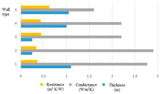In this study, we employed some secondary data, especially those previously provided by Hasan [2] regarding energy prices and wall characteristics. Some of these are USD 0.38/L, USD 0.38/L, USD 0.57/kg, and USD 0.15/kWh for diesel, kerosene, LPG, and electricity, respectively. The construction materials employed, along with some of their thermal characteristics, are shown in Figure 2.