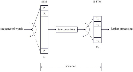 The E–STM must not be confused with the intermediate memory [30,31]. It is not modelled by studying neuronal activity, but by studying the surface aspects of human communication, such as words and interpunctions, whose effects writers and readers have experienced since the invention of writing.