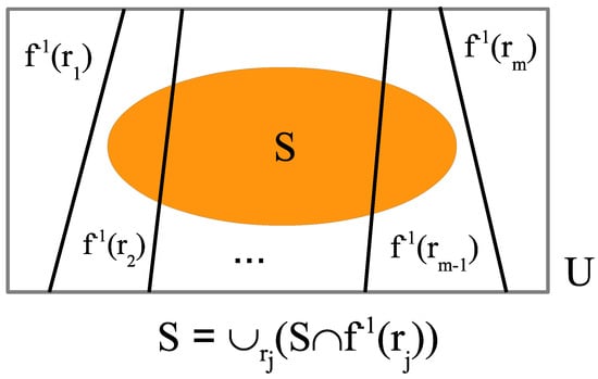 In QM, every observable or Hermitian operator F has a set of eigenspaces that form a direct-sum decomposition of the Hilbert space V. In QM/Sets, the eigenspace for an eigenvalue r of a numerical attribute is , which also form a DSD of . In QM, different eigenspaces and for are ‘disjoint’ is the sense that their intersection is the zero space. Similarly, for eigenvalues , the intersection of and is only the empty set subspace . In QM, the projections to the eigenspaces are complete in the sense that the sum of the projections is the identity operator: . In QM/Sets, the corresponding projections are: and the union of the images on any is: as illustrated in Figure 1.