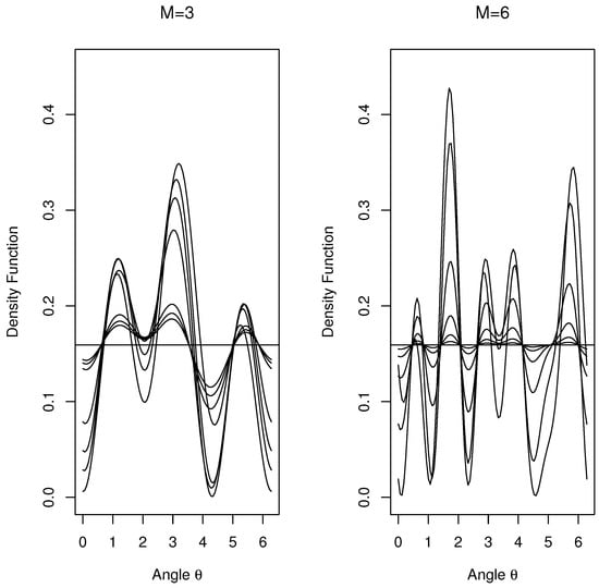 - Fernández-Durán, J.J. Circular Distributions Based on Nonnegative Trigonometric Sums. Biometrics 2004, 60, 499–503. [Google Scholar] [CrossRef] [PubMed]