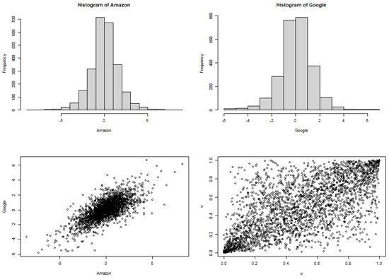 Sklar’s theorem [10] states that the joint cumulative distribution function (cdf) can be expressed as the product of the marginals and the copula, and conversely, the copula can be uniquely determined if we know the cdf and marginals. For instance, the Gaussian copula is derived from the bivariate Gaussian distribution and can also be used to generate new bivariate probability distributions via (A1) in the appendix; see [11] for summaries of the methods of constructing copulas. Necessary preliminaries on bivariate copulas corralled in Appendix A can be found in [11,12].