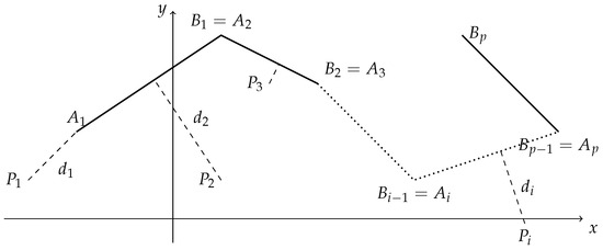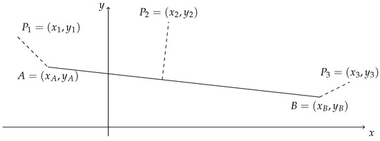 Figure 1 illustrates the positions of different points outside the segment concerning it. Having proven Equation (2), Theorem 2 enables us to calculate the square distance between a point and a segment. In the following theorem, we derive the square distance formulas for the position of each point depicted in Figure 1.