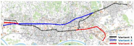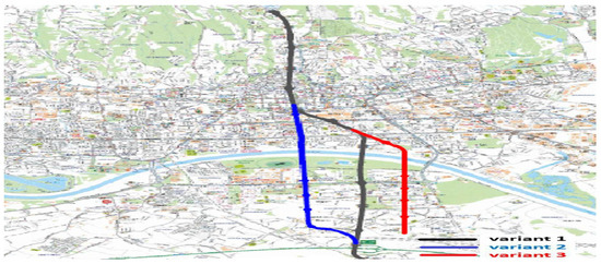 The application area we choose to showcase our approach is public transport networks. Typically, traffic infrastructure networks emerge naturally as demand increases in an environment. However, an existing network cannot meet the environment’s needs in time. In the last section, we presented several alternatives for public transportation routes that could accommodate a transportation mode with sufficient volume and speed to make public transport as attractive as possible. Despite searching the available literature, we could not find an instrument for quantitatively selecting heuristically drawn variants.