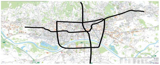 It is necessary to invest in new modes of public transport in order to attract inhabitants to use it thanks to its availability, speed, and capacity. New modes need new corridors. Below is an example of the proposed procedure for the heuristic design and evaluation of public city transport corridor networks proposals. In the following, we demonstrate the process step by step.