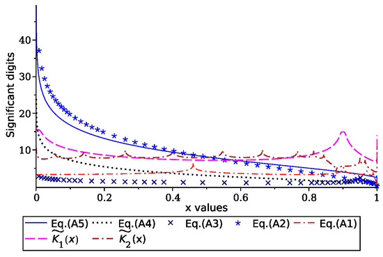 It is important to notice that we circumvented the calculation of an asymptotic approximation for because was suitable to reproduce with high accuracy the asymptotic behaviour, as x tends to the limit value at .