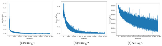 - Exponential Decay: Here, the learning rate is degraded exponentially based on the time [26]. This method is similar to Inverse Time Decay, except the decay factor is exponentially rather than linearly related to time. It is performed using the following equation:where the notation carries the same meaning as before.