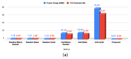 - SGD with Warm Restart: This method is applied to SGD. The idea behind this is to schedule the learning rate to keep decreasing until it reaches a minimum value, after which it starts increasing until it reaches a maximum value. This process keeps on repeating cyclically. To achieve this phenomenon, the upper and lower bounds, indicating the range of permissible learning rates, are first defined, and then the decay is carried out using cosine annealing [27]. The following equation is used to compute the learning rate for a particular iteration:Here, and are the maximum and minimum bounds of the range of acceptable learning rates. and represent the current iteration and the reference iteration that defines the interval after which the schedule needs to restart.