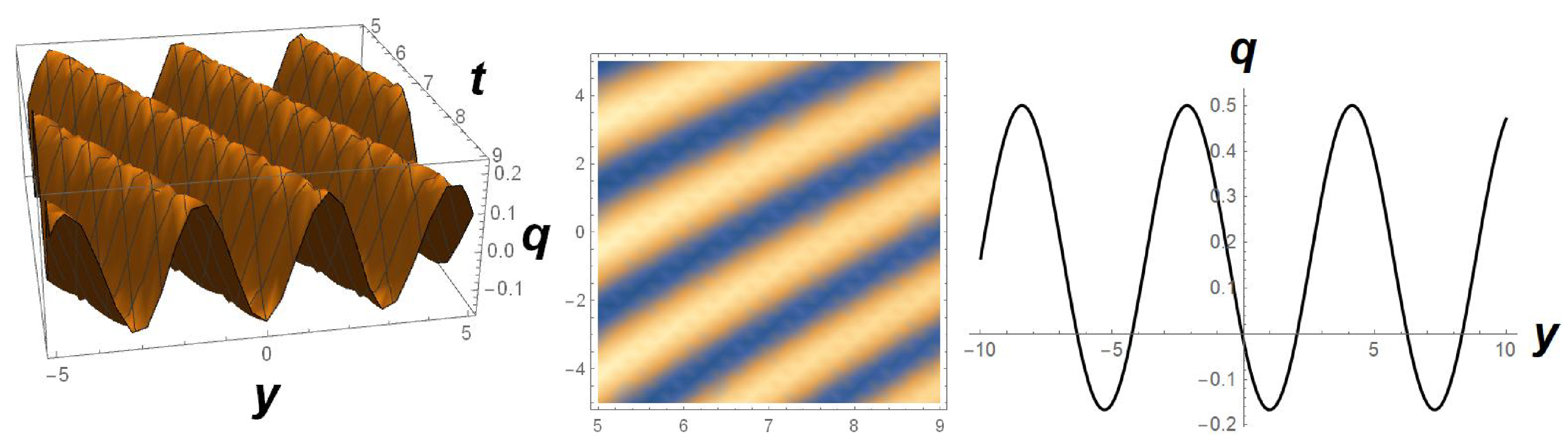 is the solution of the Equation (5) under . Here ia an arbitrary function of t and y. The profile of the solution (15) is presented in Figure 2.