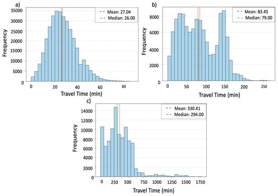 Clustering methods like fuzzy C-means clustering require that each data point has numeric coordinates (features), and that a well-defined distance measure (such as Euclidean distance) can be used to compute both the positions of cluster centroids and the degree to which each data point is associated with each cluster. While it might seem reasonable to use a travel time matrix as input, this approach poses several challenges. A time matrix only provides pairwise dissimilarities without explicit coordinates, which prevents centroid computation. Additionally, the distances may violate essential properties such as the triangle inequality, making techniques like multidimensional scaling ineffective for converting them into usable Euclidean space [11,12].