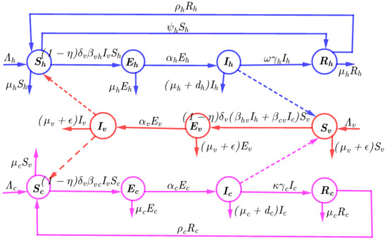 Similarly, the proposed model differential equation for the vector population can be presented in the Equation (23)