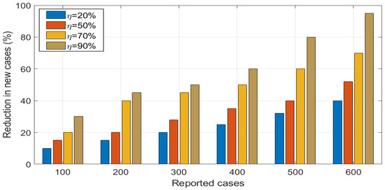 The results in (Figure 13) reveals the potential impact of insecticides on reducing the HAT transmission in the population, depicted in bar graphs. Specifically, the result shows implementing insecticides by leads to high reduction in HAT transmission. In this part, Furthermore, we performed the numerical simulations to investigate the effect of insecticides on HAT transmission, and the results are shown in (Figure 14). The numerical results show that effective use of insecticides may lead to decrease the spread disease. Specifically, we observed that as the use of insecticides , the disease remaining endemic in the population. On the other hand, the results demonstrated that as , the disease become eliminated in the population.