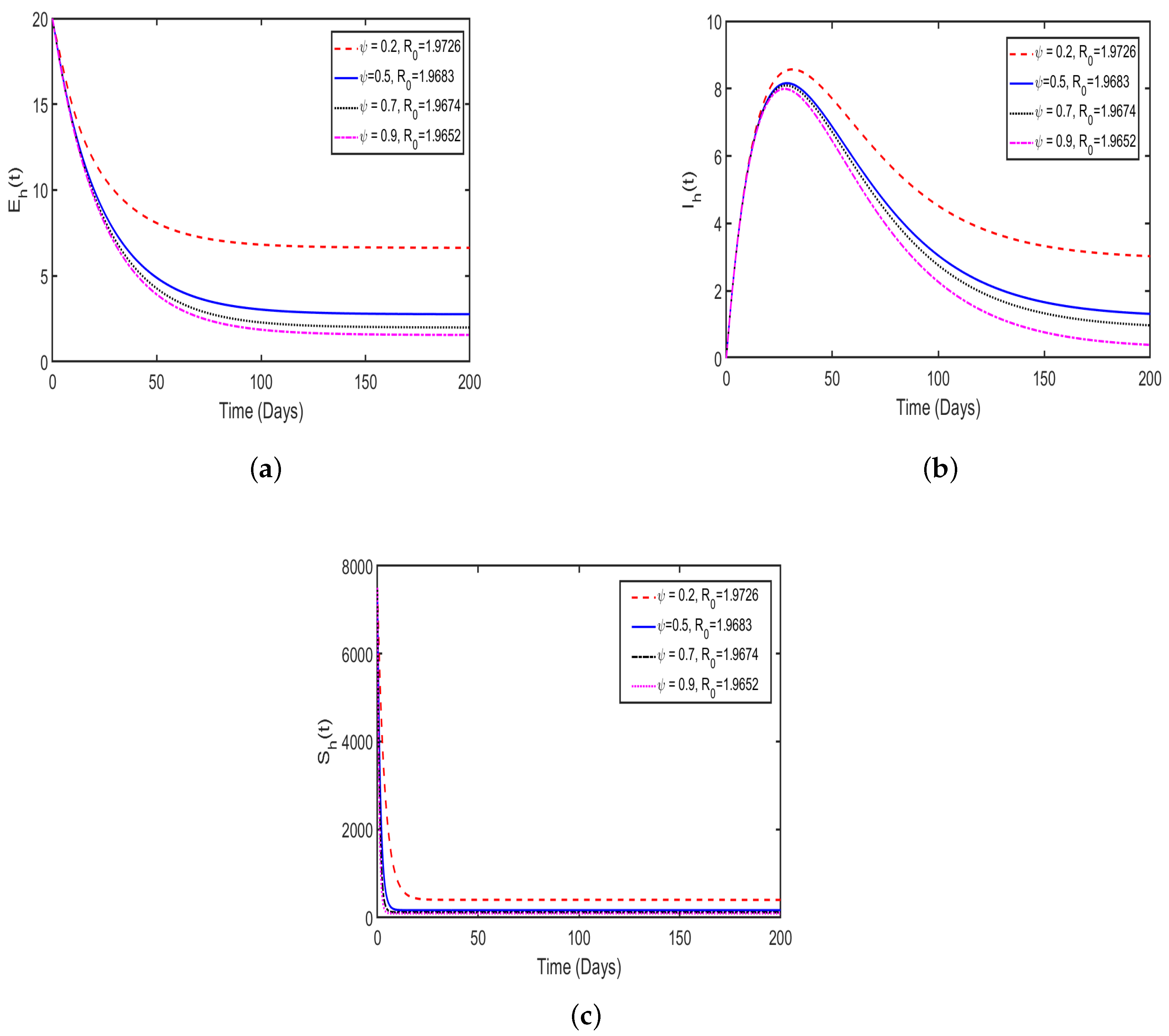 5.5. Impact of Prevention Measures on the Disease Dynamics