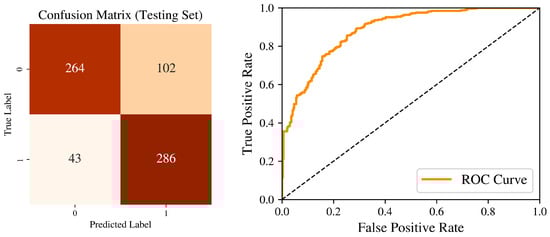 Confusion Matrix and ROC Curve in the testing set.