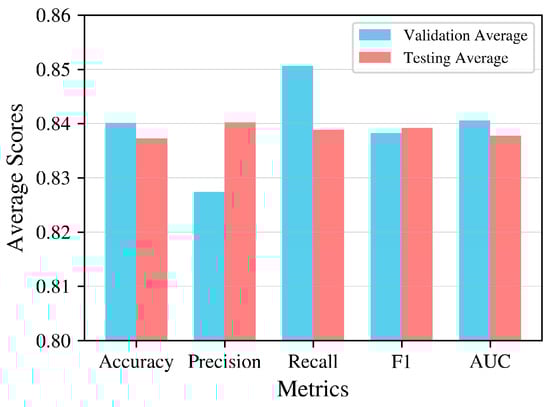We compute the Accuracy, Precision, Recall, F1 score, and AUC value [15,16], with a five-fold CV(coefficient of variation) [17]. The result in Table 2 suggests that our model performs well with an accuracy of 85.2026%, and other metrics are all greater than 80%, which ensures good performance in the training set.