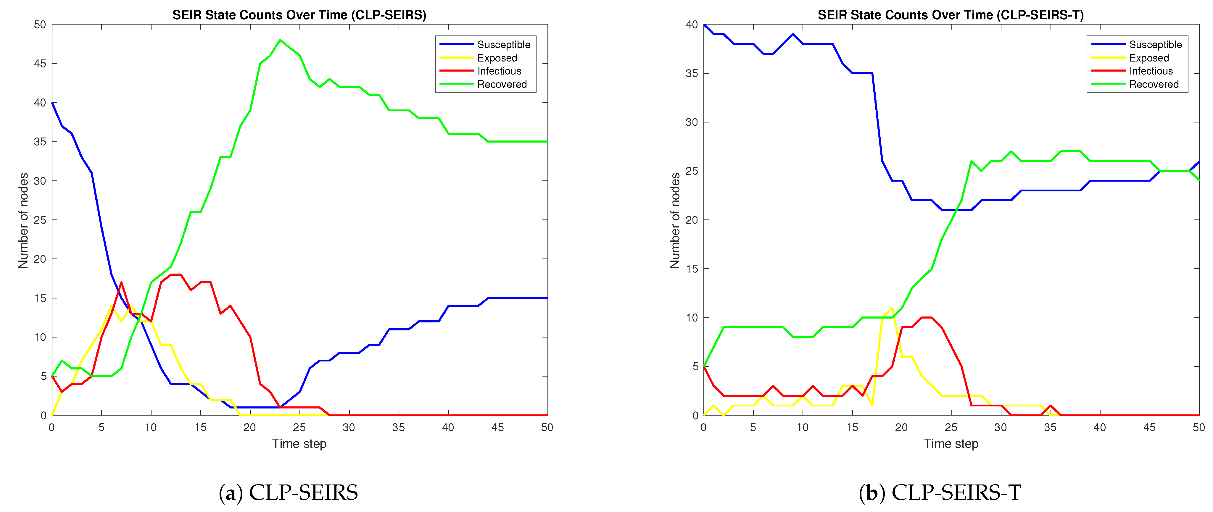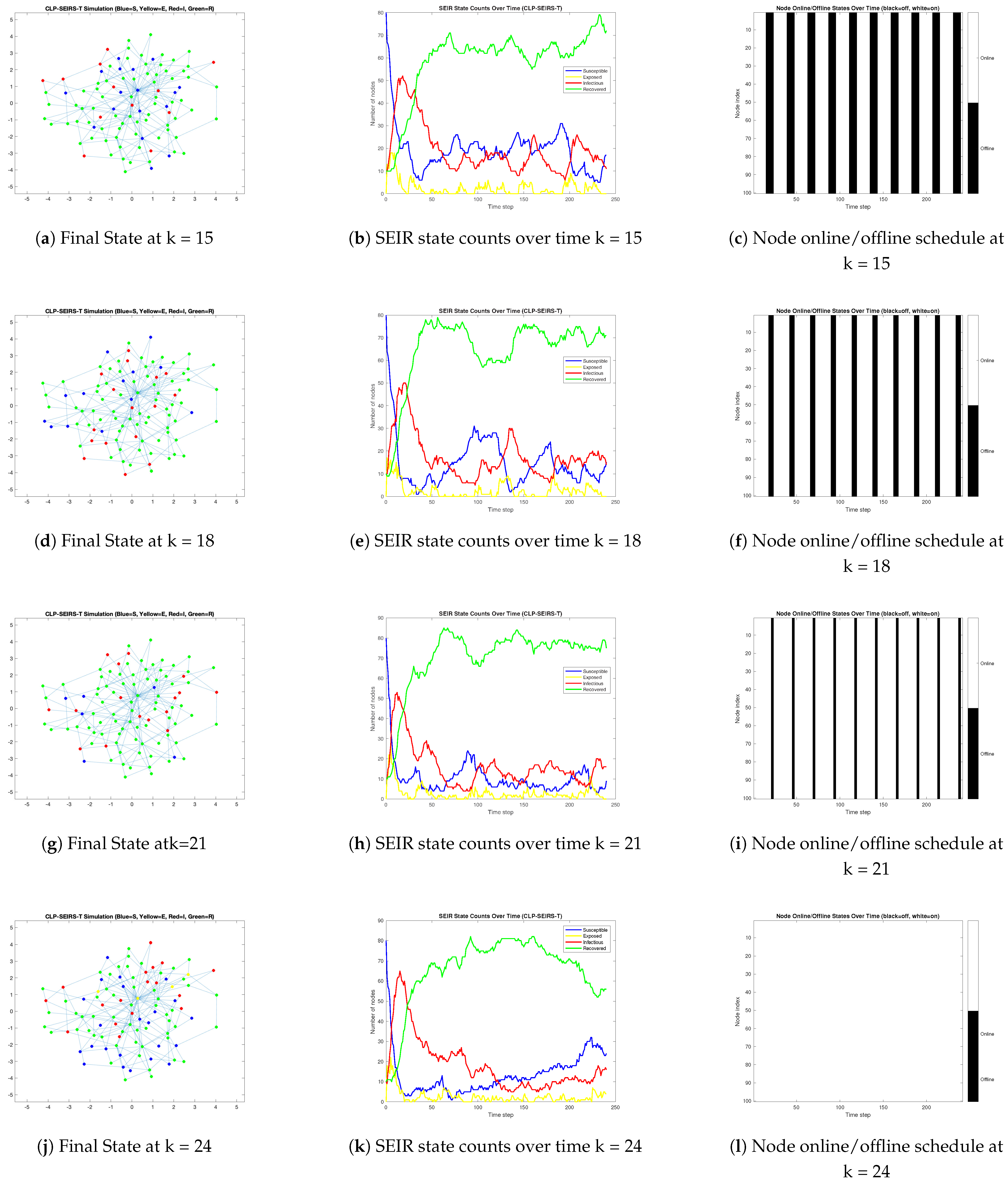 - Empirical Validation: At present, due to the lack of publicly available datasets on malware propagation in urban communication networks, the CLP-SEIRS-T model has only been evaluated via simulations on synthetic networks. In the future, we plan to validate the model against real-world data. One possible approach is to apply the model to network traffic traces from actual systems, or to conduct controlled experiments in a virtual machine-based network environment to simulate real malware spread scenarios.