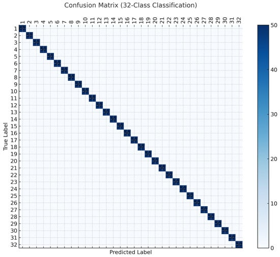 To further validate these results, a confusion matrix was constructed for the best performing case of SVM with TIFVs. As shown in Figure 7, the predictions form an almost perfect diagonal matrix, confirming the high class separability.