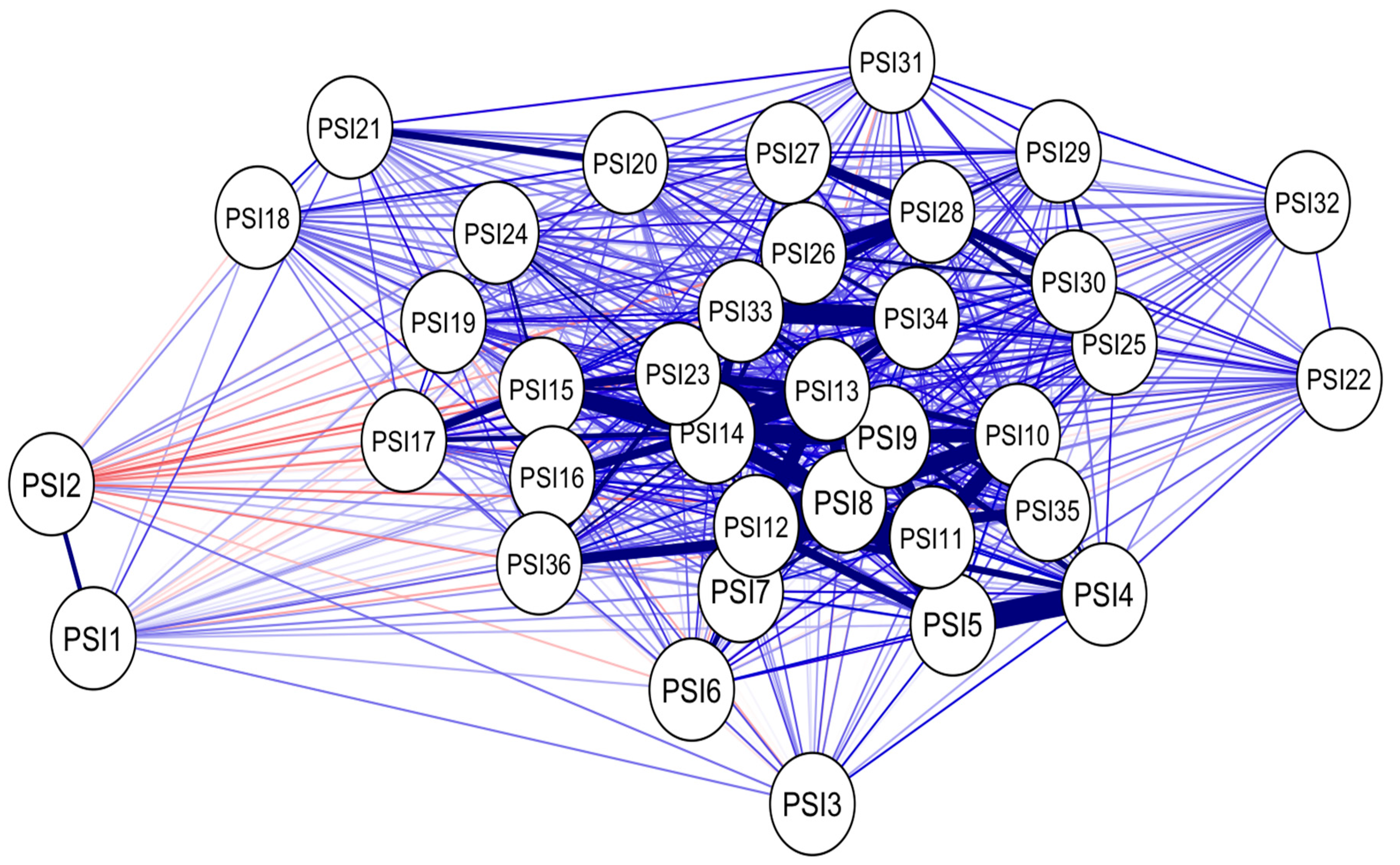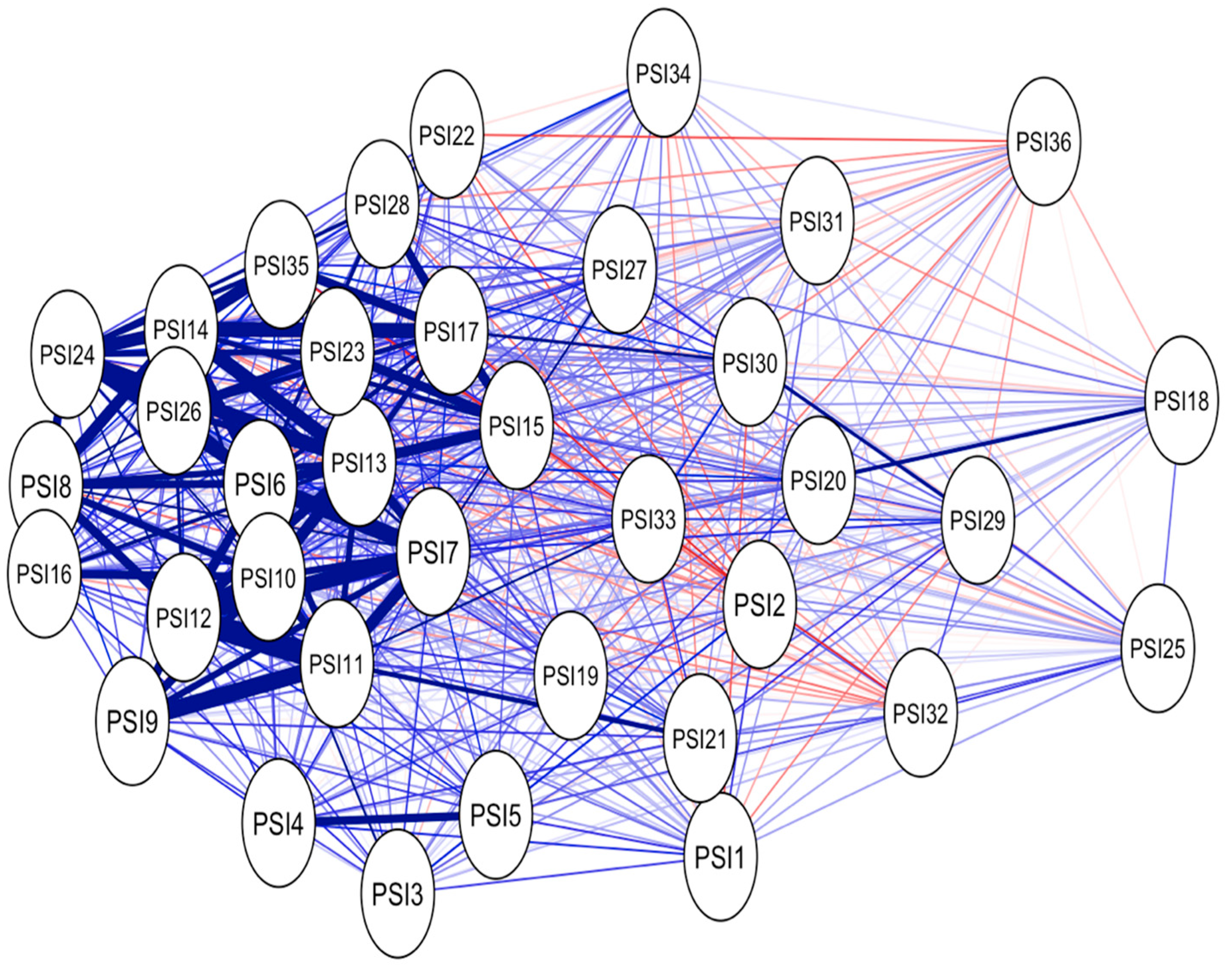 | High Betweenness | PSI 7 (Dissatisfaction with life) and | PSI 14 (Parent’s efforts for child unappreciated) |