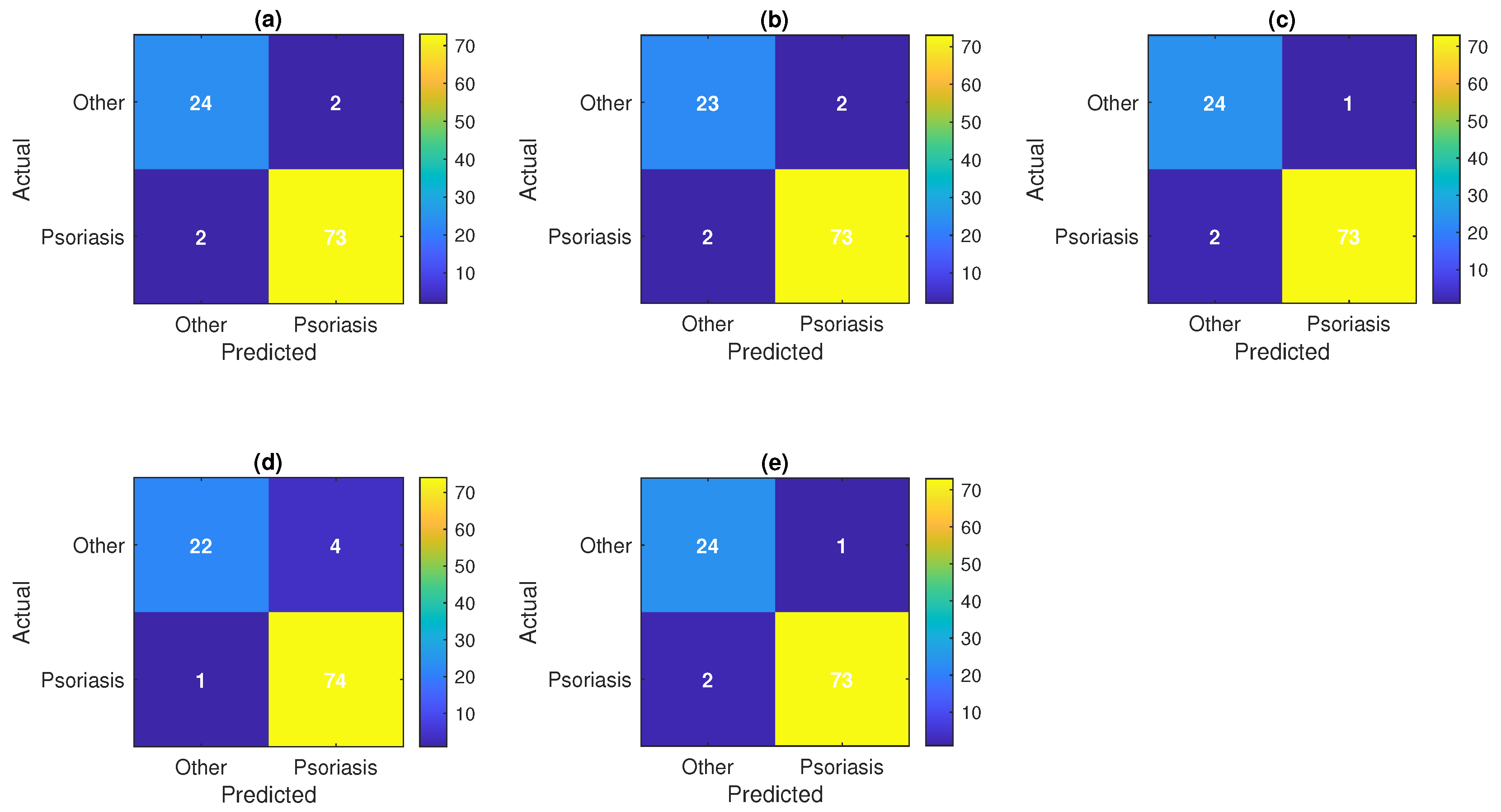 - Shehzadi, N.; Rehman, A.; Naz, S.; Rehman, S.; Khalifa, F. Machine learning and deep learning based psoriasis recognition system: Evaluation, management, prognosis—Where we are and the way to the future. Artif. Intell. Rev. 2025, 58, 263. [Google Scholar] [CrossRef]