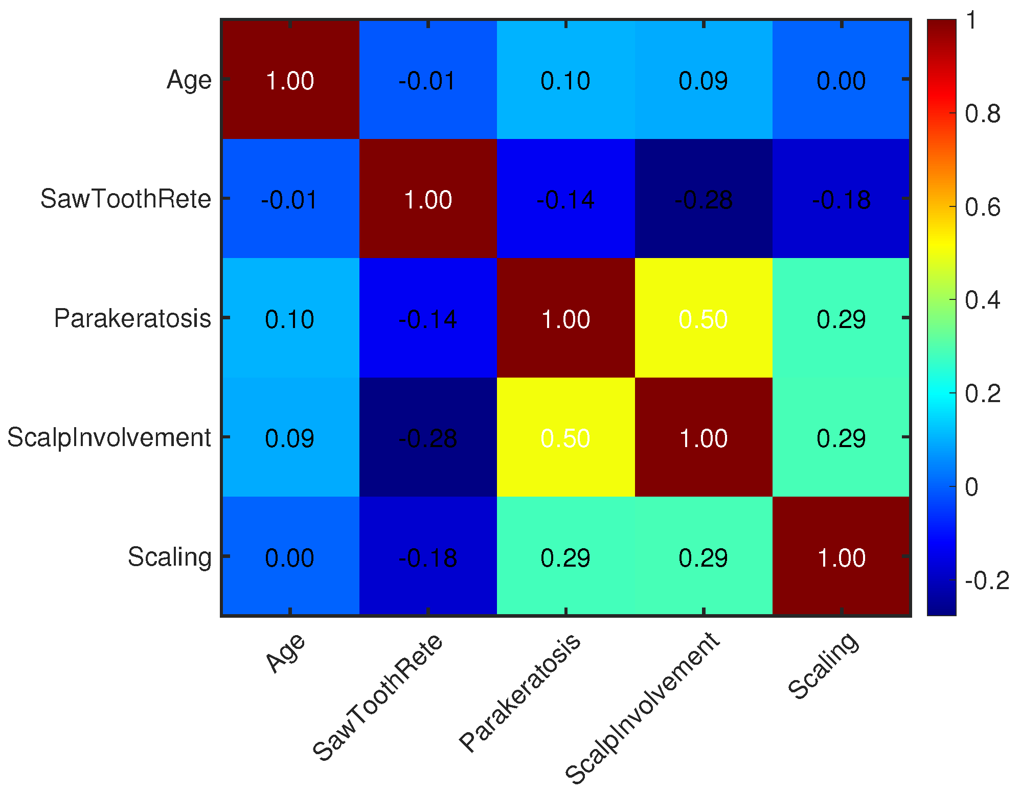 Feature Names | Age, SawToothRete, Parakeratosis, Scalp Involvement, Scaling |