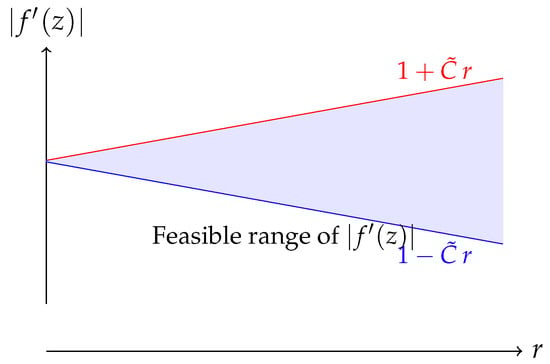 Theorem 7 shows that the class coincides with the closed convex hull of the extremal functions . In particular, every function in can be realized as a convex combination of the extremal members , with and of the form specified in Theorem 7. This characterization provides not only a constructive description of the class but also a useful tool for deriving further extremal problems, see Figure 3.