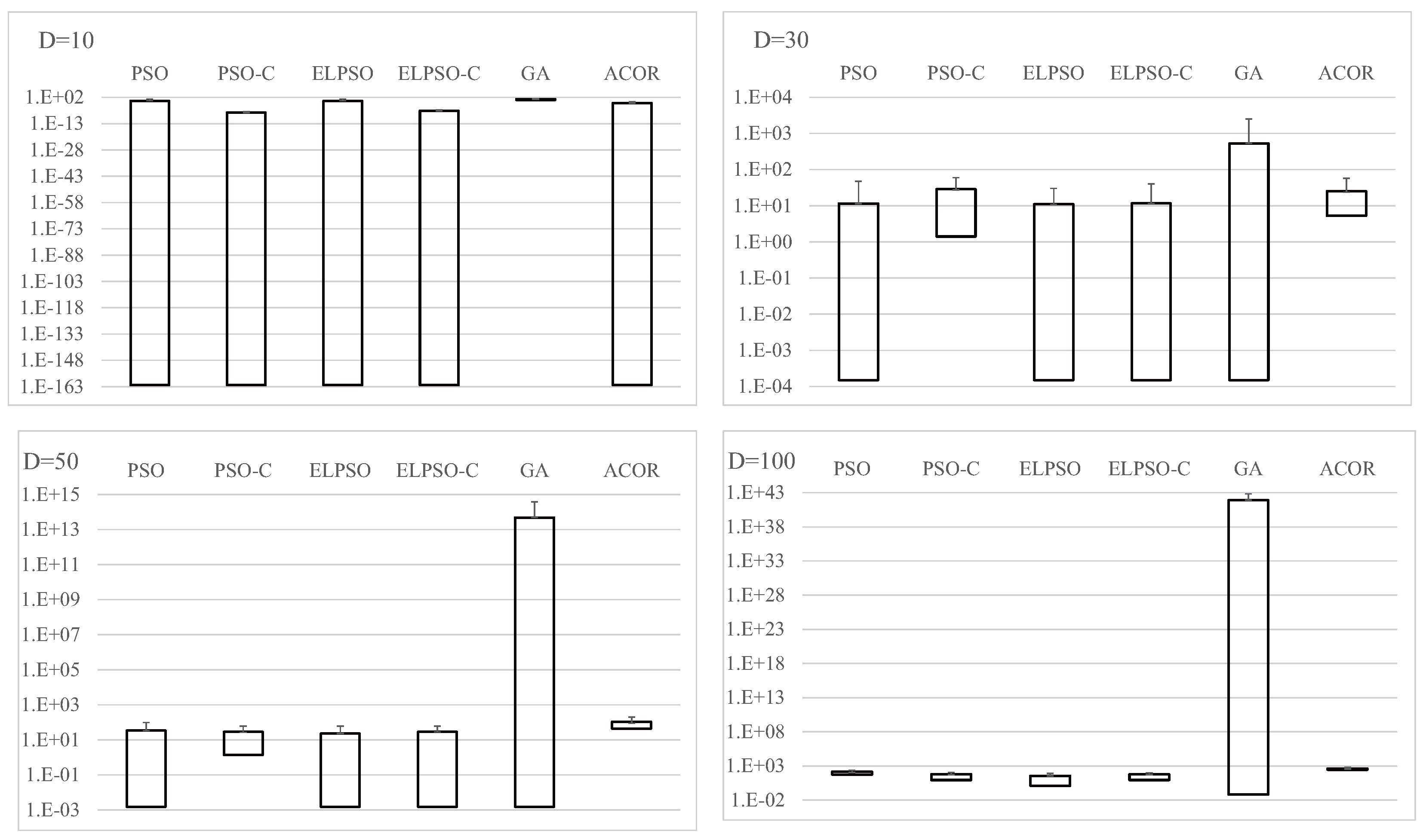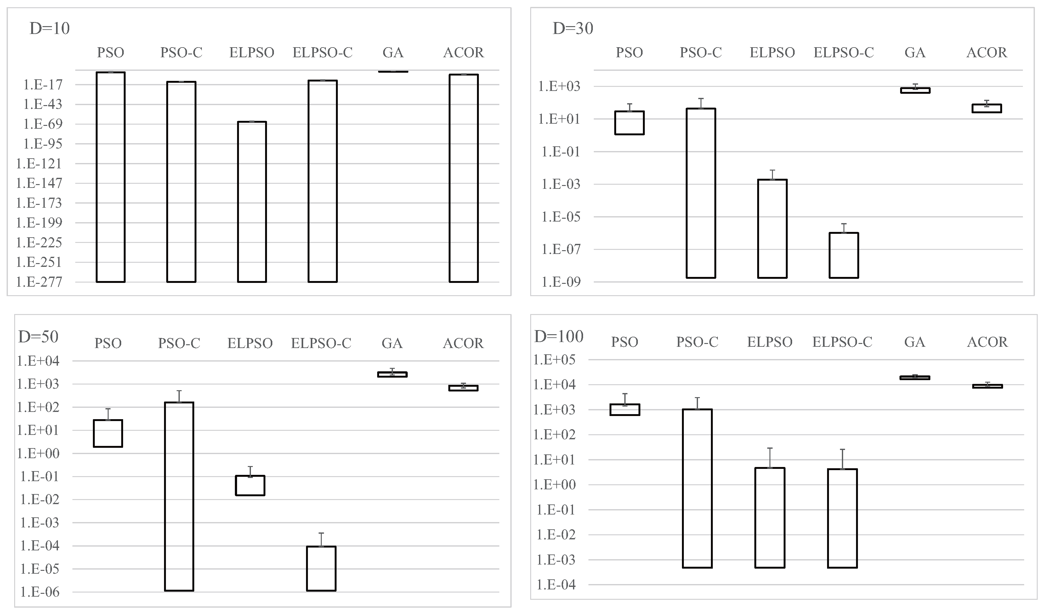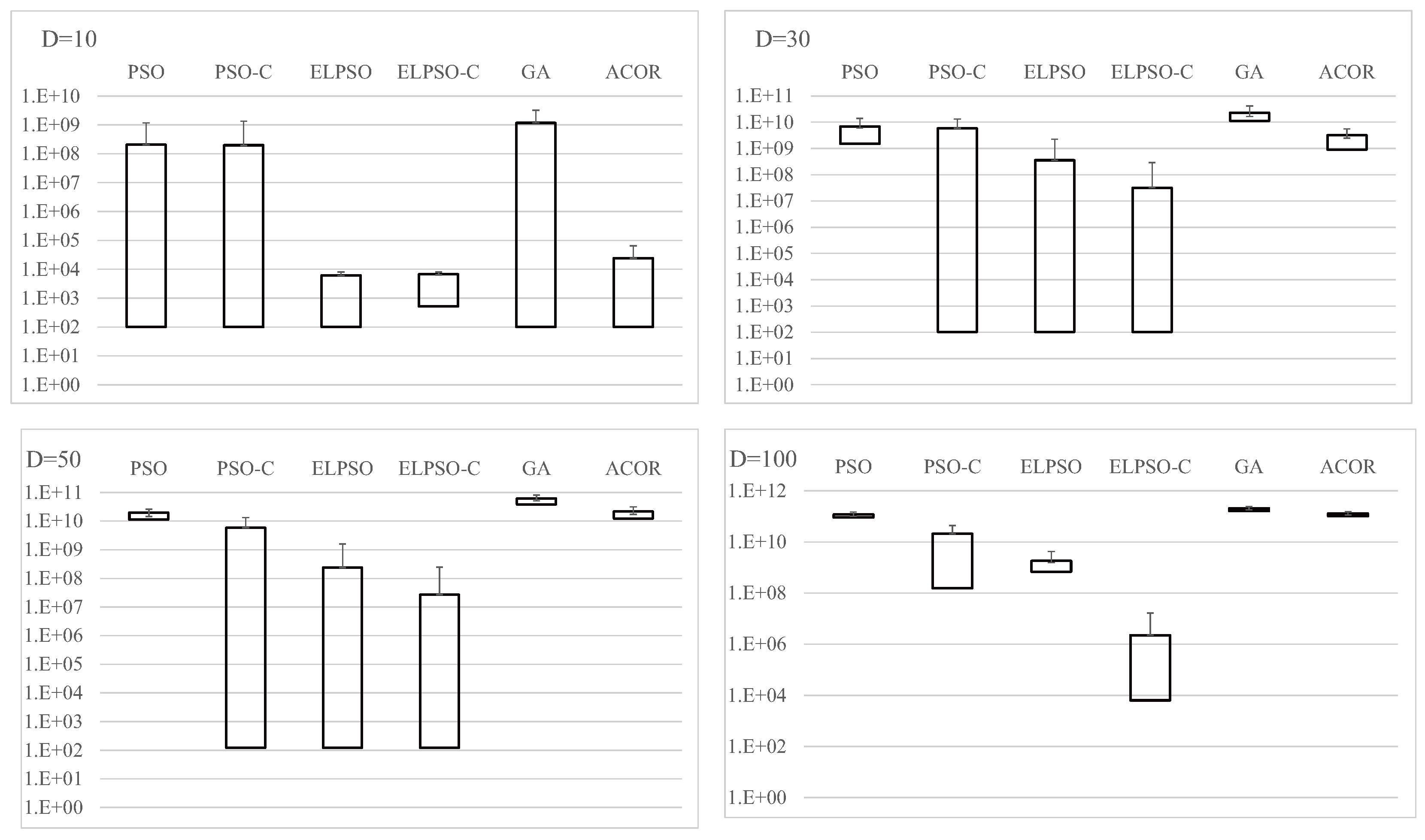 | Metric | PSO | PSO-C | ELPSO | ELPSO-C | GA | ACOR |