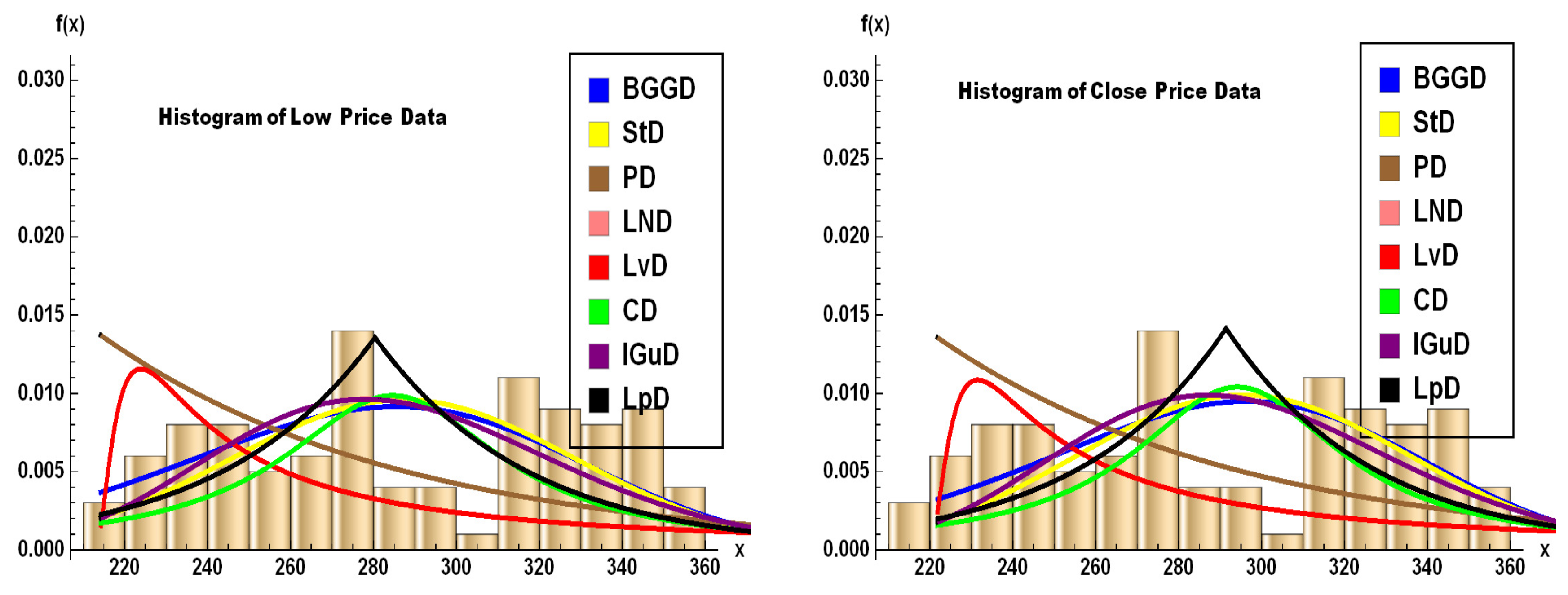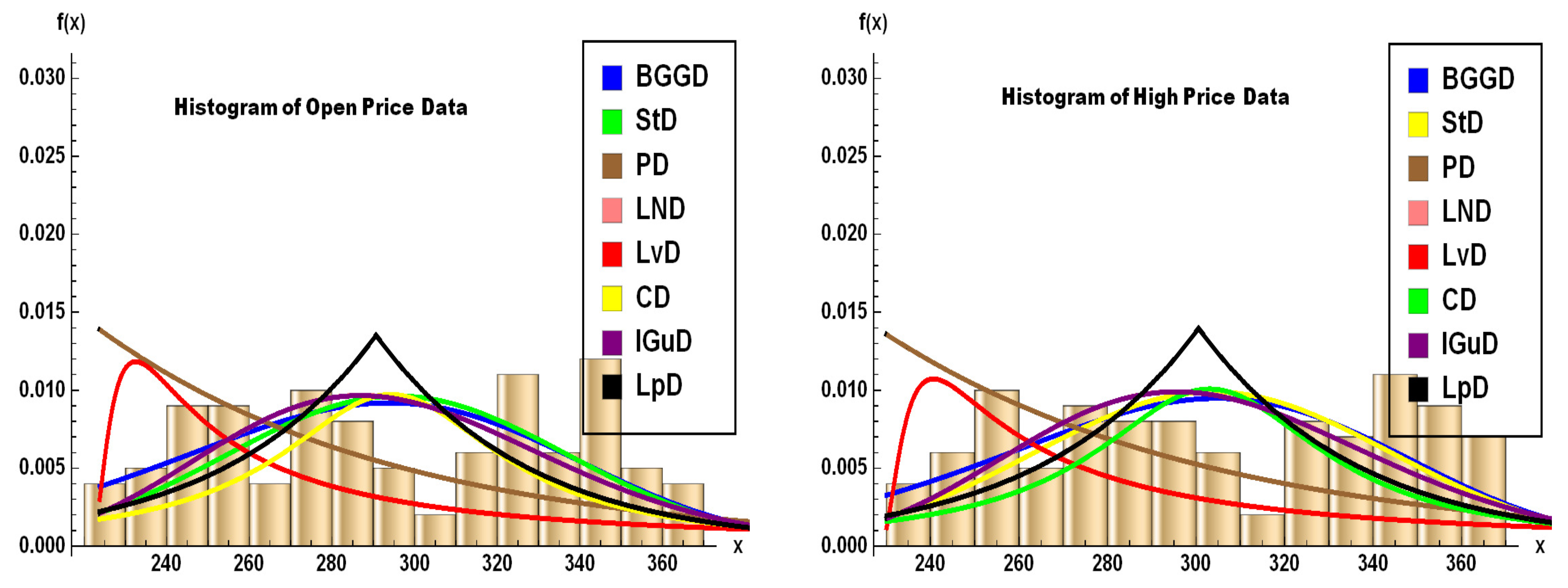 - To incorporate the growth or decay rates of returns, volatility, or prices, we consider a mixture based on the Gamma–Gompertz distribution CDF [18]. Specifically, letand define the corresponding density asUsing this formulation, we generate a new class of distributions suitable for modeling dynamic behaviors in financial or economic data.