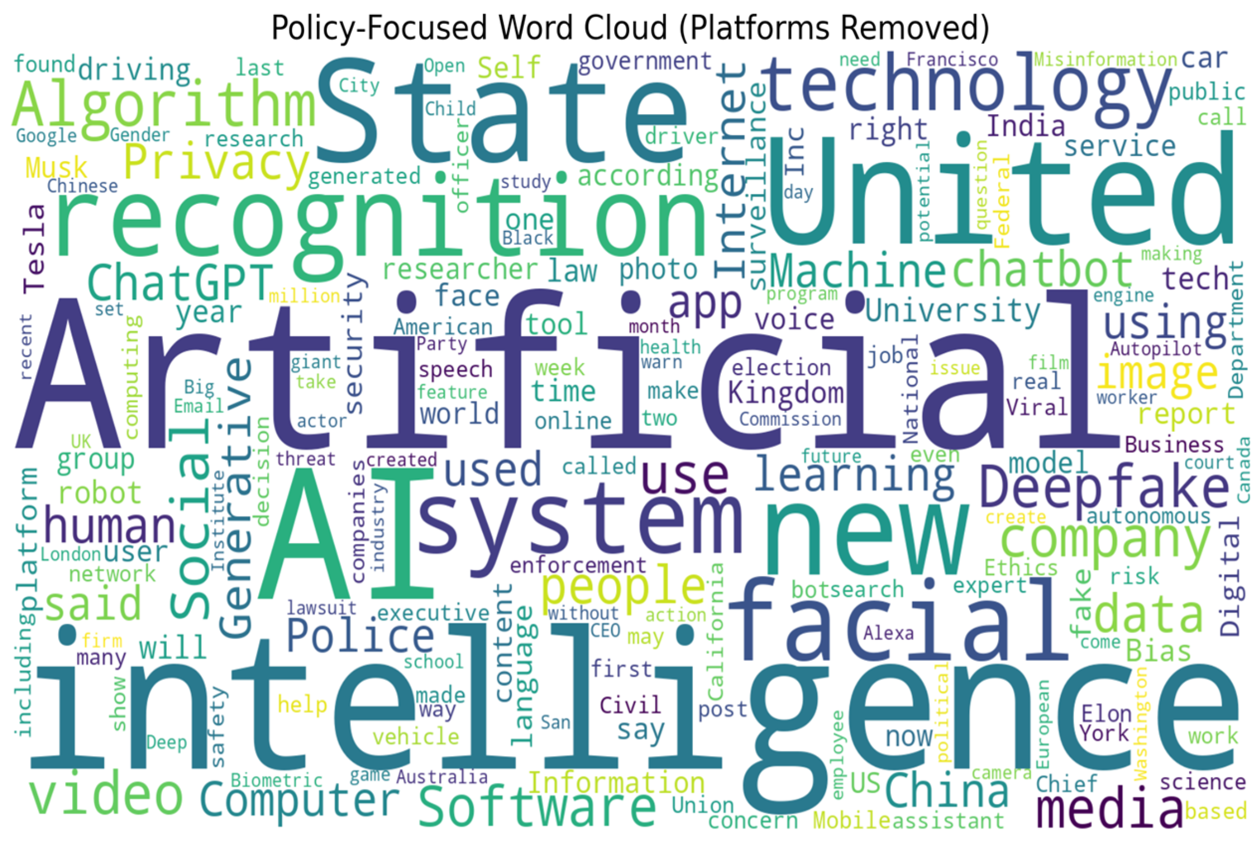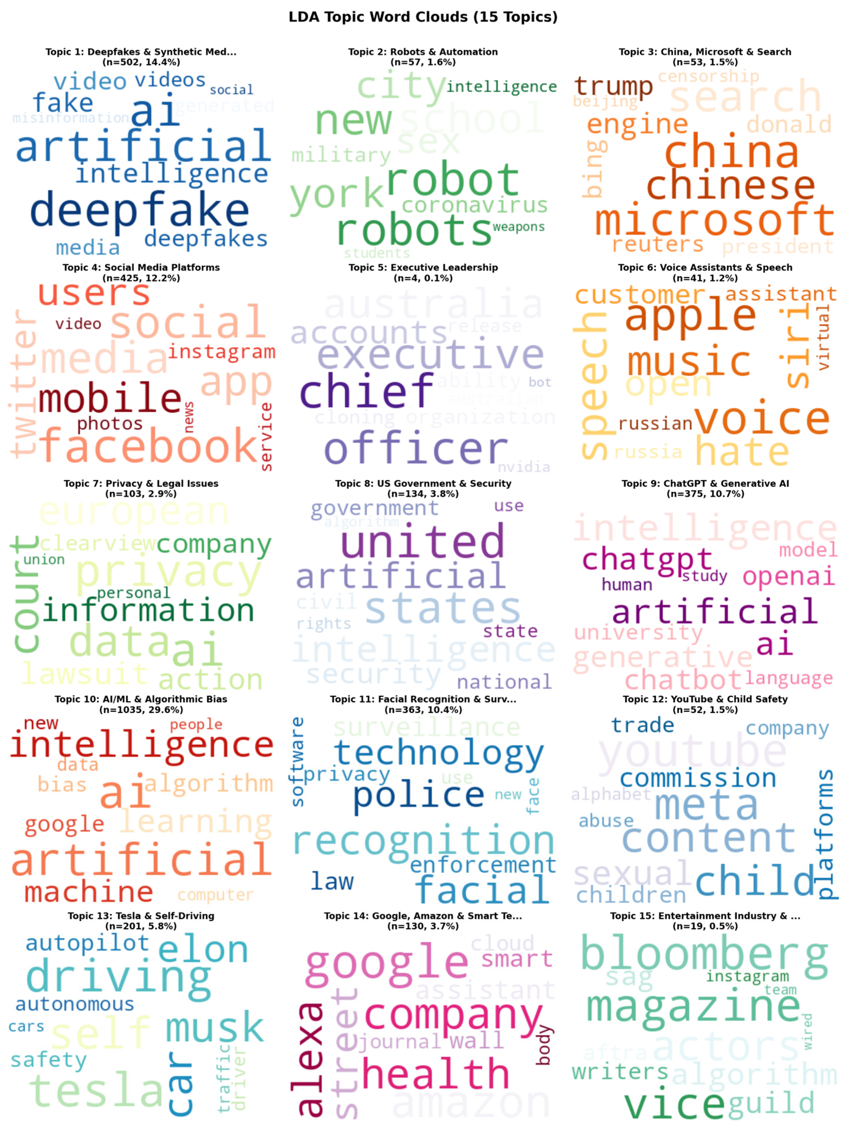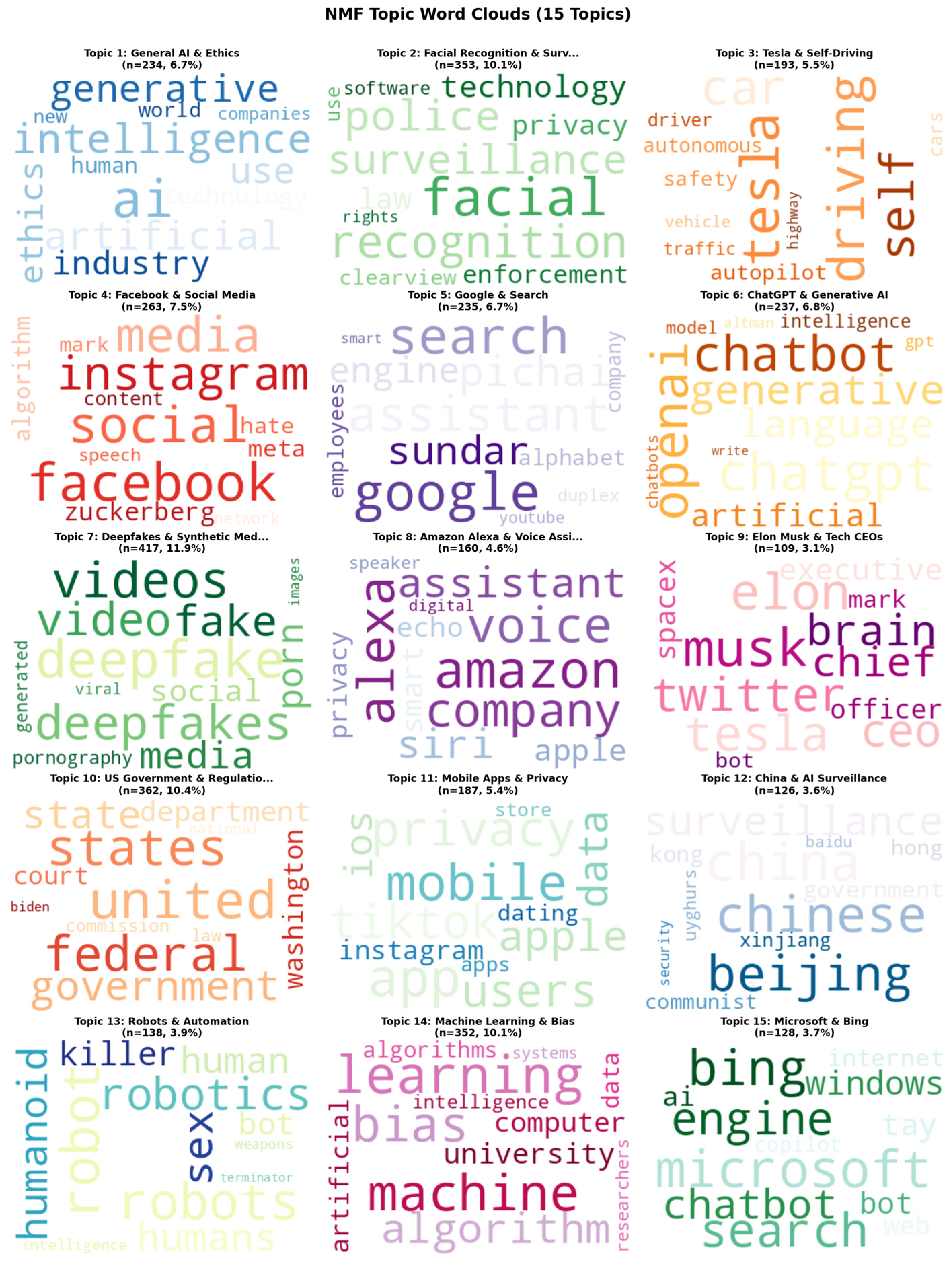 | 1 | General AI & Platform Risks | 2808 (80.4%) | ai, google, data, facebook, algorithm |