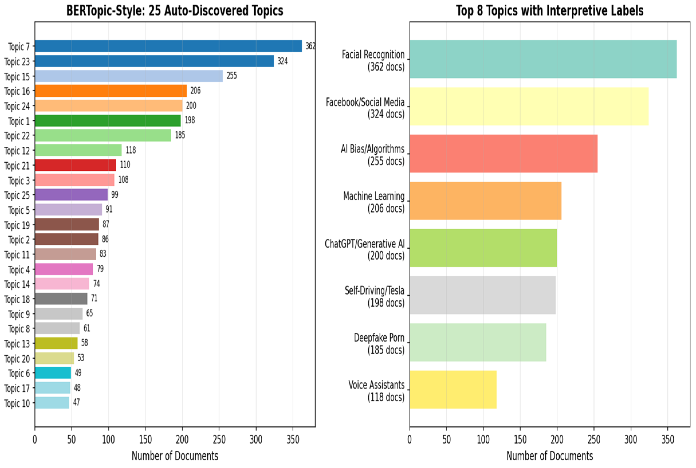 | BERTopic Clustering | Fine-grained discovery | Automatic topic selection |