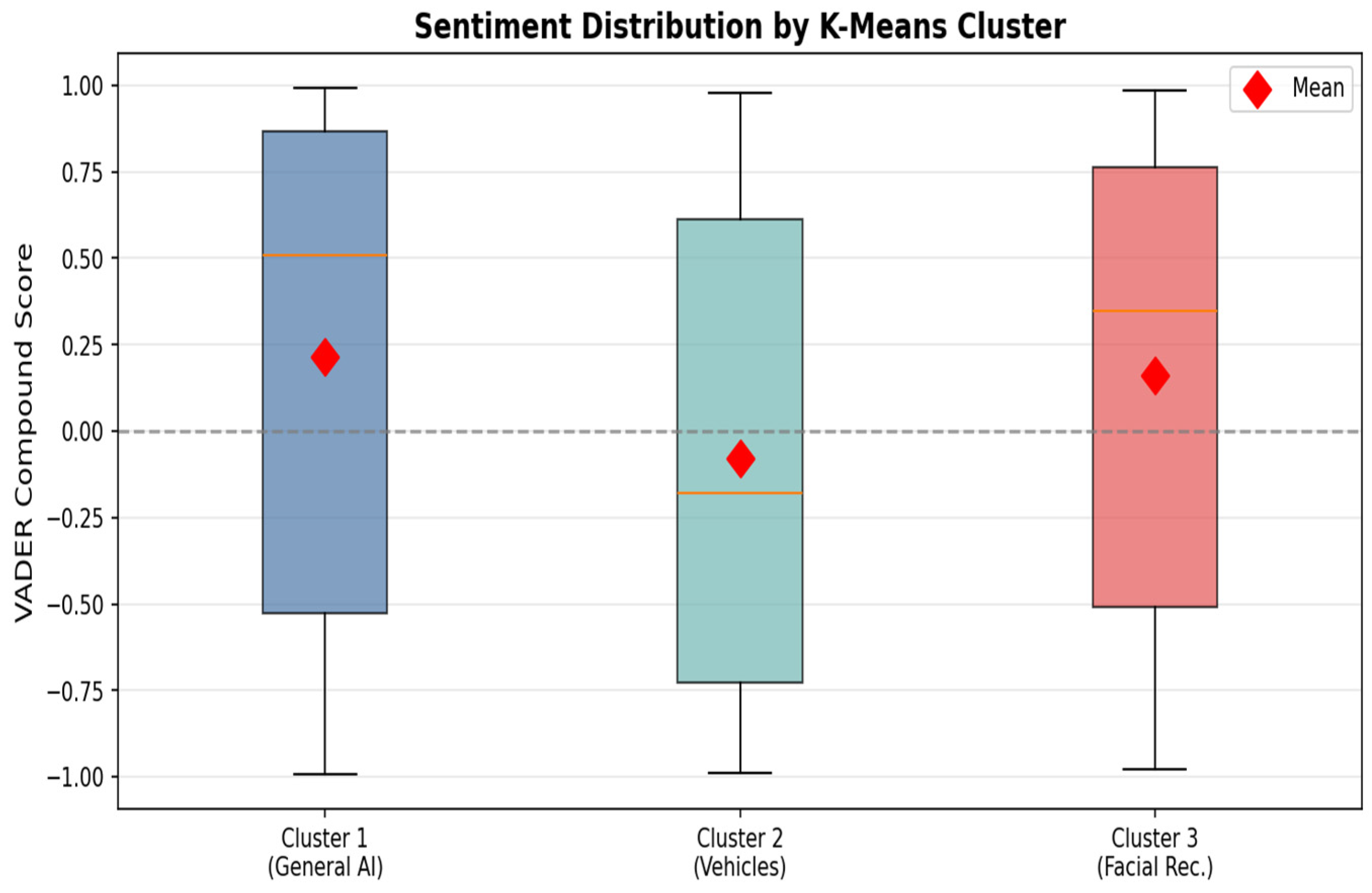 | Autonomous Vehicles | Cluster 2 | Topic 1 | Topic 13 | Topic 3 | 84–89% |