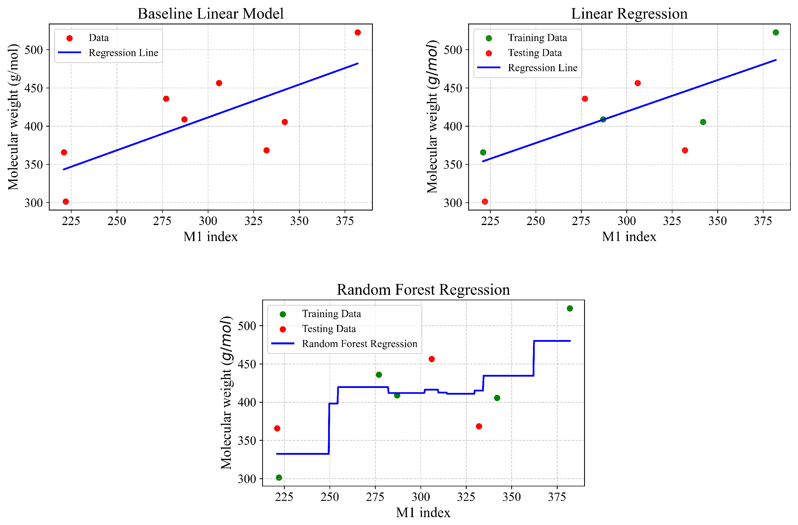 Results of machine learning methods regarding the M1 index and molecular weight.