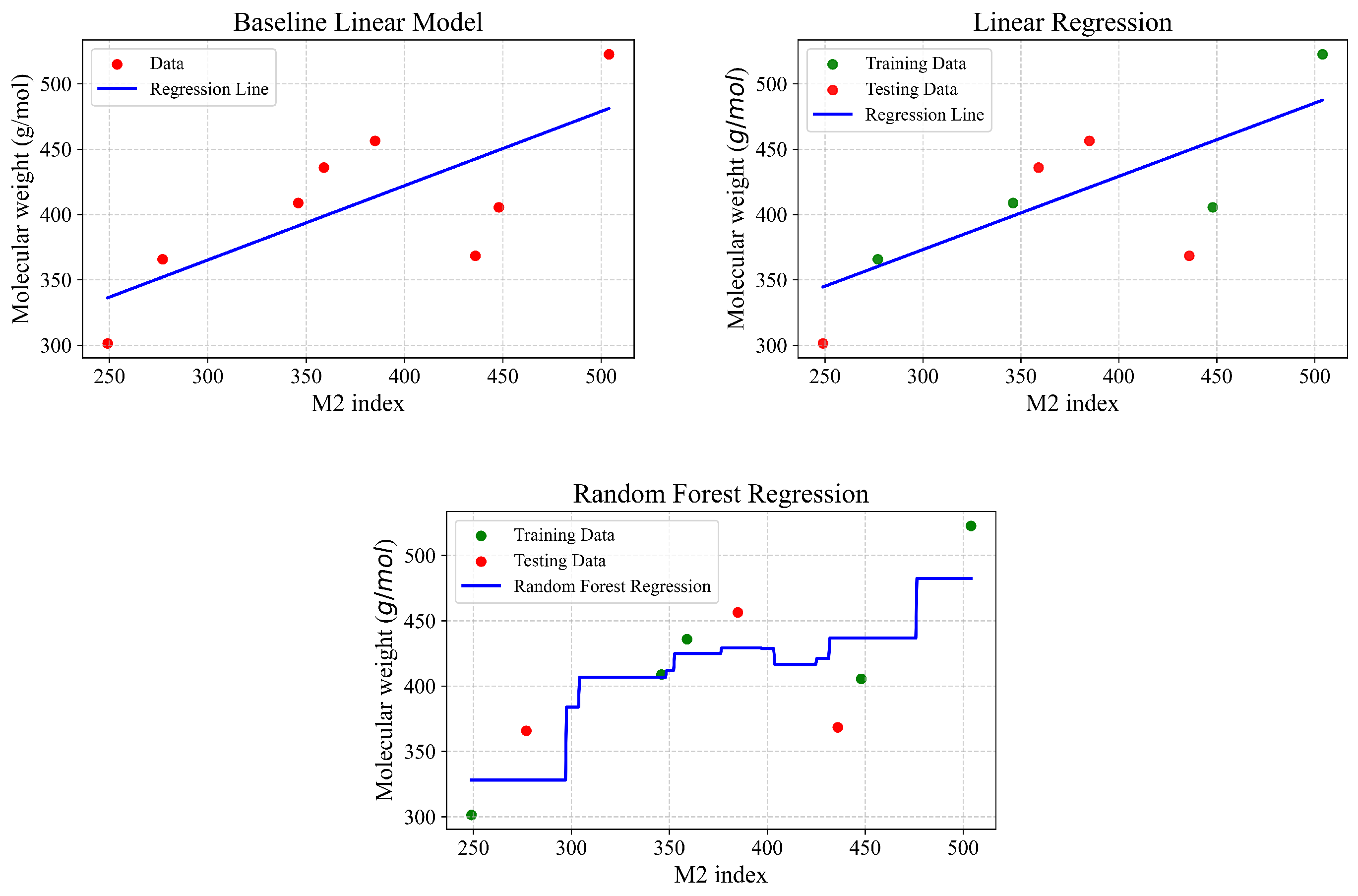 Results of machine learning methods regarding the M2 index and molecular weight.