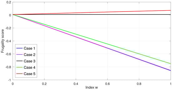 Using data from Table 4 and Table 5, frugality lines are plotted for . For this purpose, five cases have been considered.