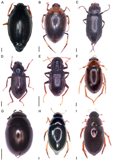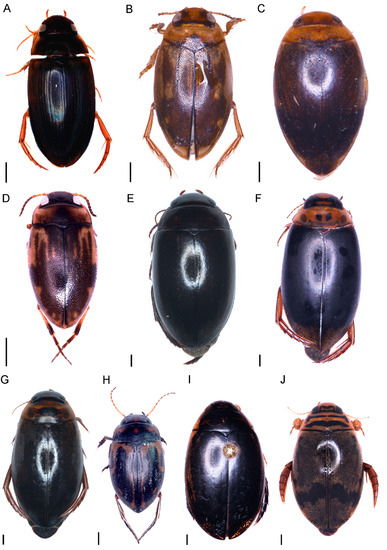 - Bilton, D.T.; Ribera, I.; Short, A.E.Z. Water beetles as models in ecology and evolution. Annu. Rev. Entomol. 2019, 64, 359–377. [Google Scholar] [CrossRef] [PubMed]