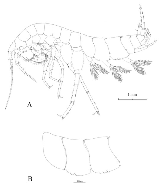 - Schellenberg, A. Krebstiere Oder Crustacea. In IV: Flohkrebse oder Amphipoda; die Tierwelt Deutschlands und der angrenzenden Meeresteile nach ihren Merkmalen und nach ihrer Lebenweise; Gustav Fischer: Jena, Germany, 1942. [Google Scholar]