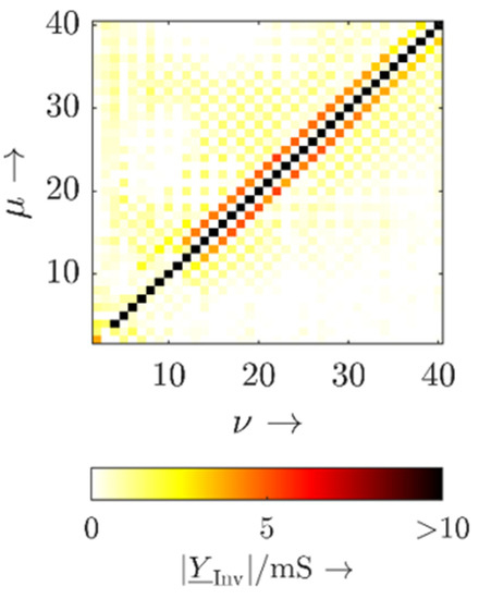 Now that the measurement-based representation, i.e., the FCM, has been derived, it can be seen that the FCM and the HSS according to Equation (11) are the same, if the frequency resolution of the HSS is chosen to be the same as the frequency steps in the measurements, e.g., harmonics of 50 Hz and M (order of truncation) being set to 40.