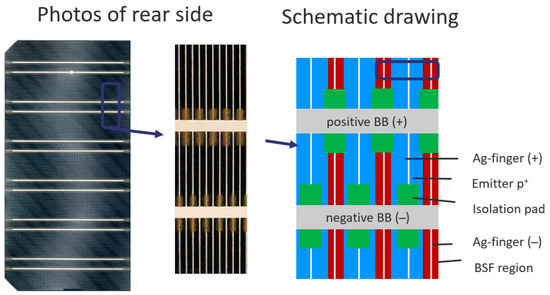 We cannot disclose the exact process flow, as this sequence and the exact method are patent-pending. The finished solar cells already clearly show the higher voltages in the brighter areas of the TBC solar cell under electroluminescence images as shown in Figure 9.