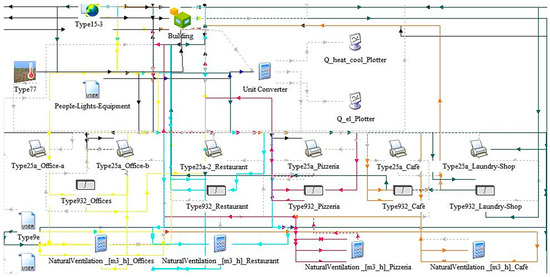 Part of the TRNSYS Simulation Studio model of the building cluster.