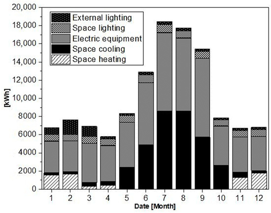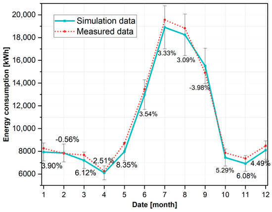 - Calibration of the model on the basis of monthly measured data of the electricity consumption of the building units;