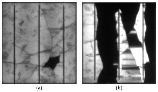 - Abdellatif, B.; Chakir, E.; Abdellatif, G.; Elminor, H.; Messaoudi, C. Propagation of Cracks in Standard Cell and Half-Cell Photovoltaic Technology. In Proceedings of the 2020 2nd International Conference on Photovoltaic Science and Technologies (PVCon), Ankara, Turkey, 30 November–2 December 2020; pp. 1–4. [Google Scholar]
