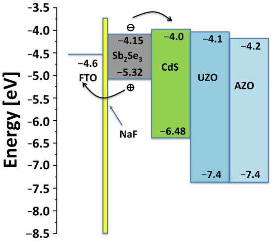 Band diagram of the AZO/UZO/CdS/Sb2Se3/NaF/FTO/glass solar cell.