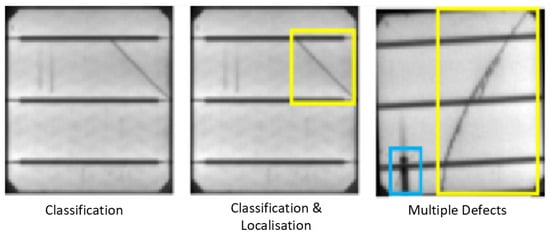 It is crucial to note that, with the strides made in DL techniques, as well as the incorporation of regularisation and advanced data processing methodologies, models yielding accuracies below 90% no longer command the status of groundbreaking research. However, Sergiu Deitsch et al. [96] introduced a novel dimension by proposing the utilisation of both an SVM and a CNN network for the detection of multiple defects within EL-based solar cell images. Notably, the authors report commendable accuracy for both CNN (88.42%) and SVM (82.44%). In their endeavour, the authors embrace the realm of transfer learning by leveraging the VGG-19 architecture. The final fine-tuning is carried out through a two-step process. Initially, the ADAM optimiser is employed for weight updates, with the weights of the fully connected layer initialised randomly. Subsequently, the weights across all layers undergo refinement in the second stage. An intriguing point of consideration is the authors’ adjustment of the “momentum” value to 0.9 and the utilisation of stochastic gradient descent (SGD) during the second phase. It is worth clarifying that “momentum” serves as a hyperparameter in the context of SGD with momentum (SGD-M), which differs from the standard SGD optimisation approach. The rationale behind the modification of the ADAM optimiser during the second fine-tuning stage remains ambiguous and warrants further elucidation.
