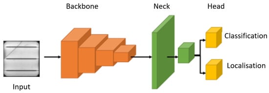 In the context of manufacturing, object detection (OD) plays a crucial role in ensuring product quality and minimising defects. Traditional quality inspection methods, often relying on human operators, have limitations, such as subjectivity, human error, and high labour costs. The application of DL and CV techniques, particularly OD algorithms, offers a promising solution to overcome these challenges and improve the accuracy and efficiency of quality inspection processes. Among the various OD algorithms, the You Only Look Once (YOLO) architecture [13,14] has gained significant attention due to its unique single-stage framework. Unlike two-stage models like region convolutional neural networks (R-CNNs), YOLO streamlines the detection pipeline, resulting in enhanced performance and superior results [15]. The effectiveness of YOLO has been demonstrated across a wide range of applications [16,17,18], making it a popular choice for researchers and practitioners alike.
