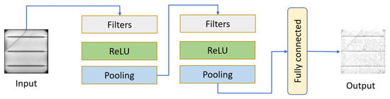 Following the convolution operation, the output features undergo a pooling step. This process aims to extract the most salient features through aggregation, effectively downsampling along the spatial dimensions (width and height) of the feature maps. Several pooling mechanisms are available for this purpose [81], including average pooling, sum pooling, and the widely employed max pooling. As an example, the max-pooling function applied to a one-dimensional input can be expressed as follows (Equation (2)):