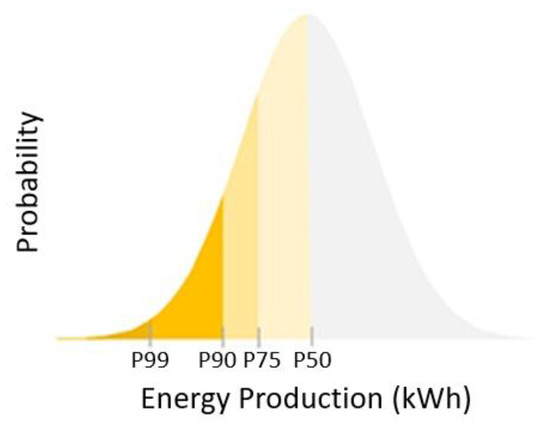 Given that the simulation results rely on inputs and methodologies that inherently carry uncertainties, we conducted an uncertainty analysis on the electrical performance of the FPV systems to better assess potential deviations. In this analysis, we used percentile calculations, where the P50 value represents the most likely outcome (also presented in Table 4). The P75 and P90 values indicate the performance levels that are expected to be exceeded, with probabilities of 75% and 90%, respectively. These estimations were made using a normal distribution based on the identified uncertainty values. The distribution and corresponding percentile values are illustrated in Figure 9 below. Table 6 provides the p values, which highlight the reduction in performance at the P75 and P90 levels compared to the P50 value. These results offer additional insights into the range of expected FPV system performance, contributing to more robust and reliable expectations.