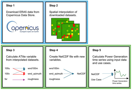 - In Step 4 the newly calculated variables is packaged in a NetCDF file with the correct metadata for ATlite to read it correctly (Section 2.3).