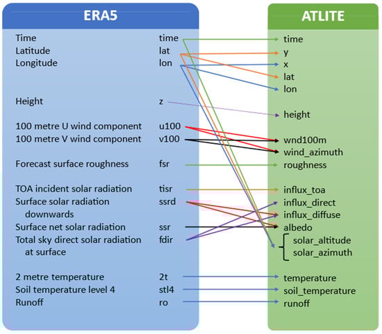 ERA5 and ATlite variables relationship mapping.
